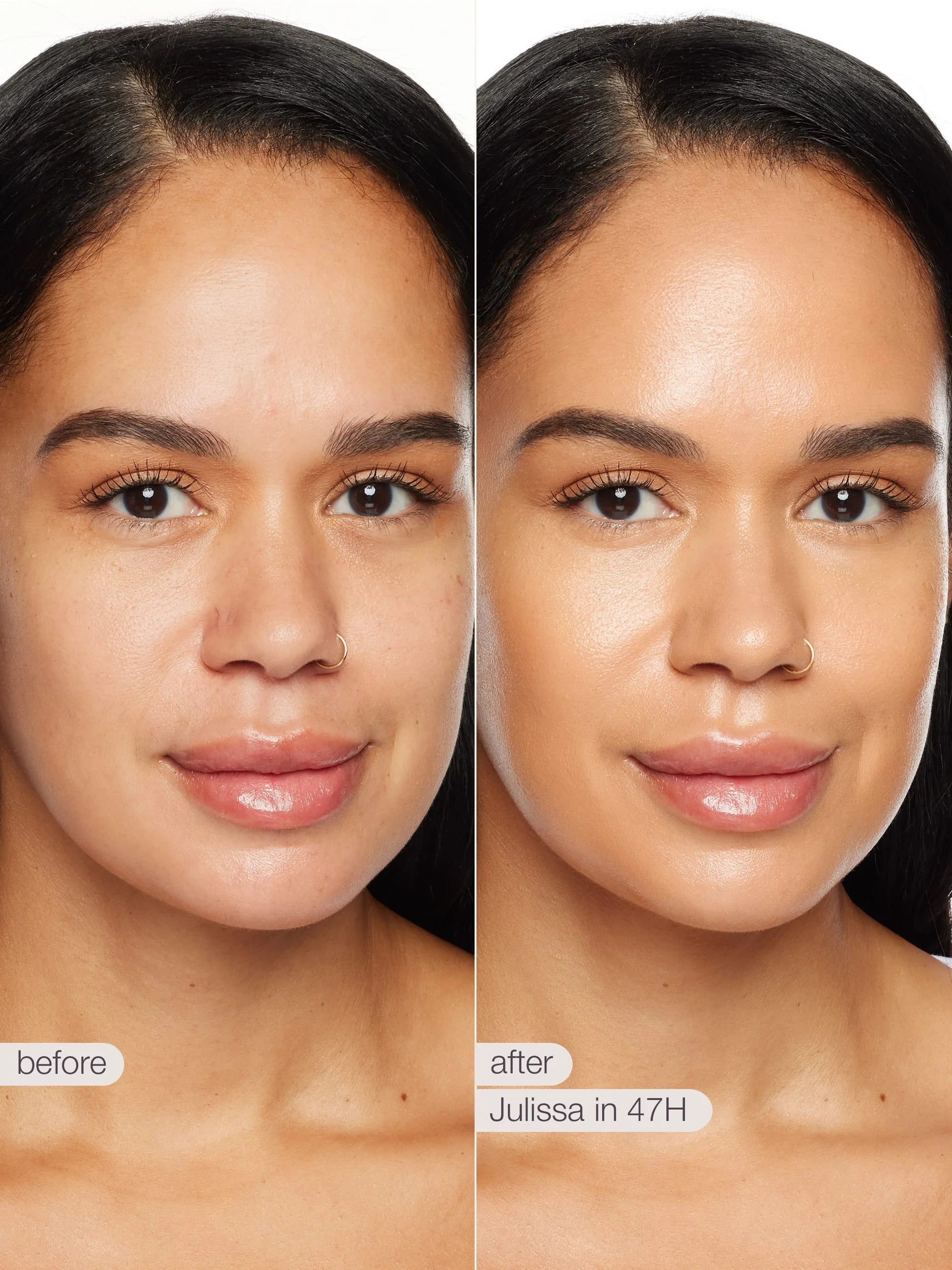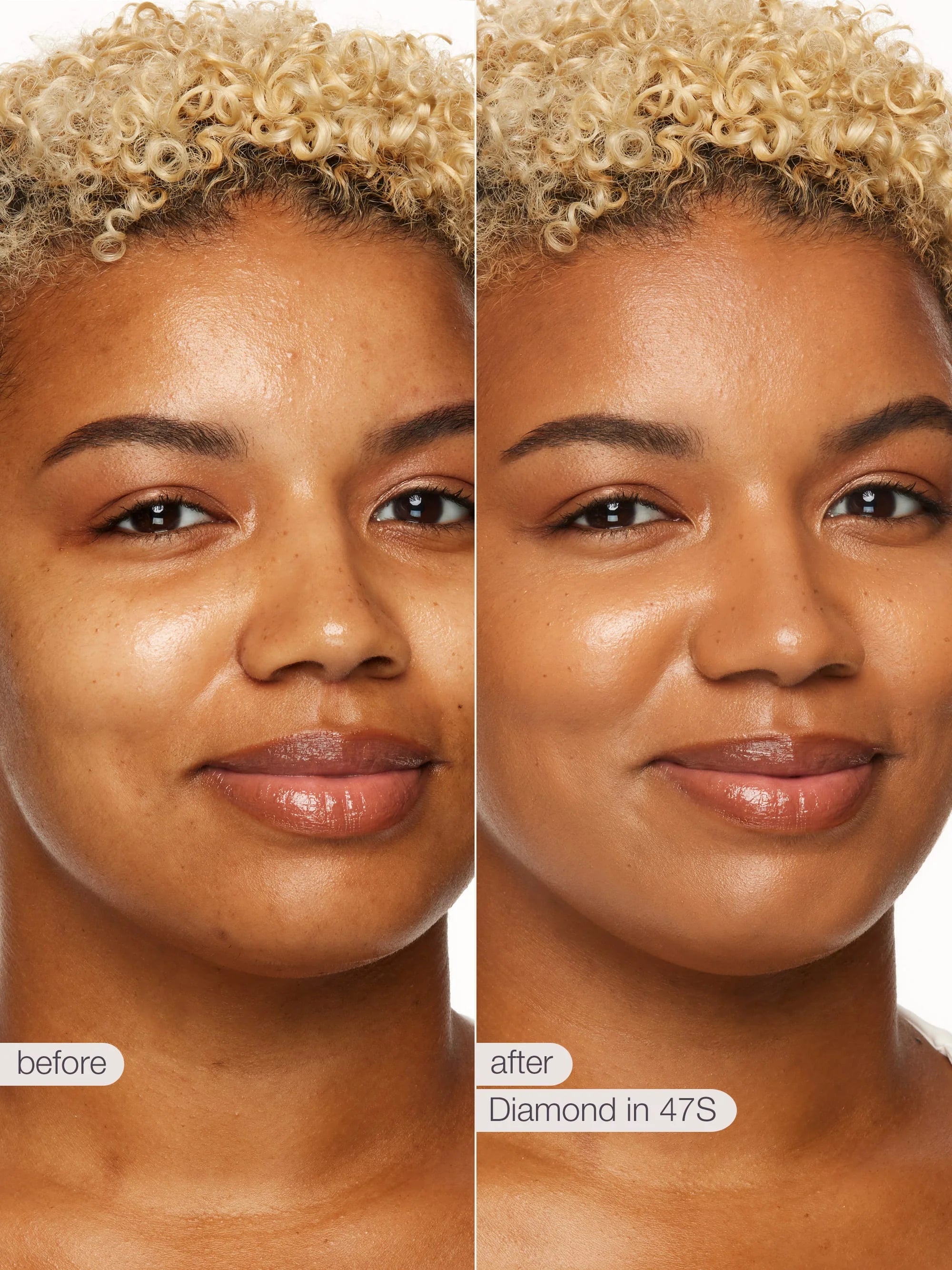 It has a luminous, radiant, ‘no makeup” finish with no glitter.