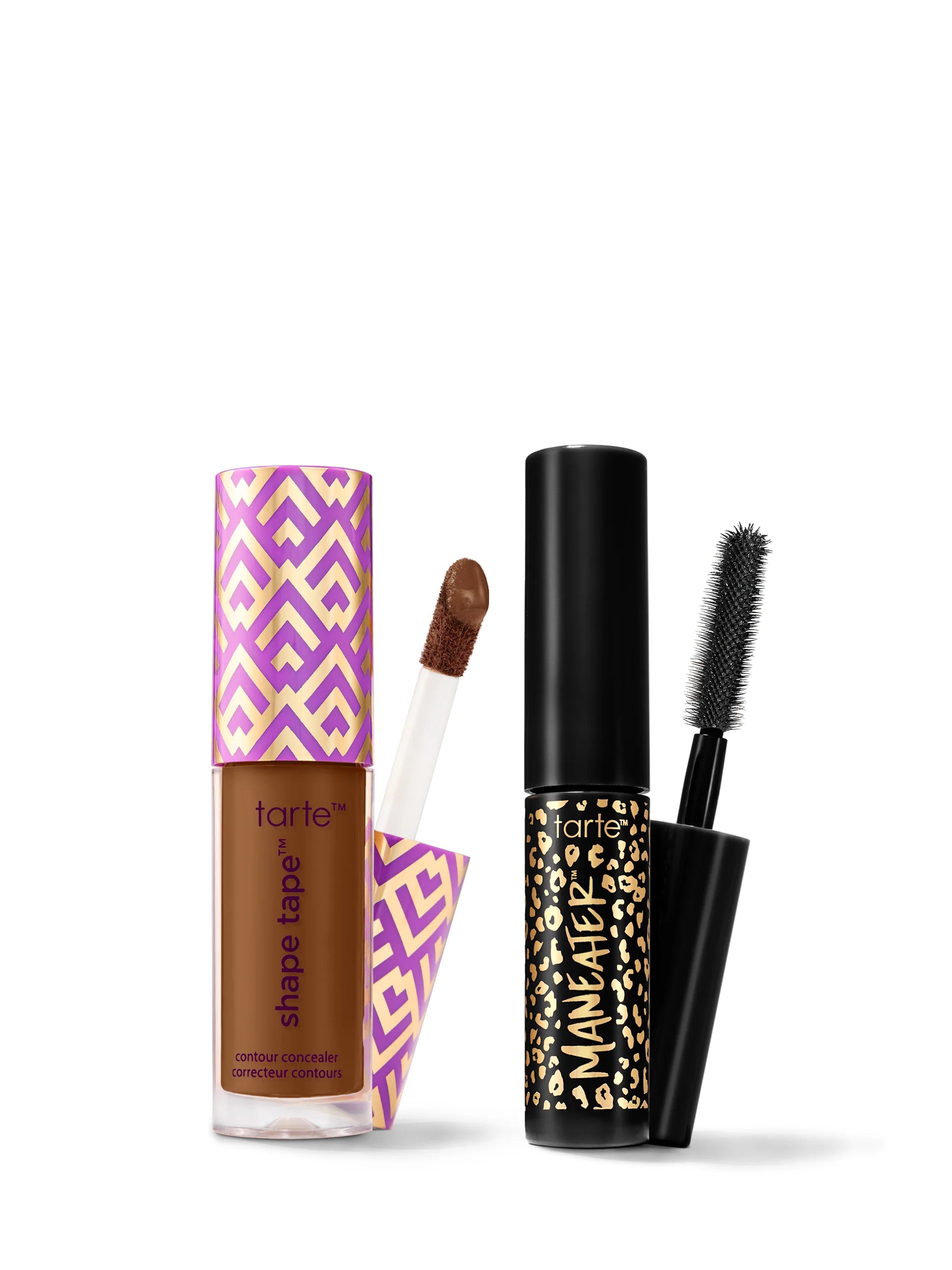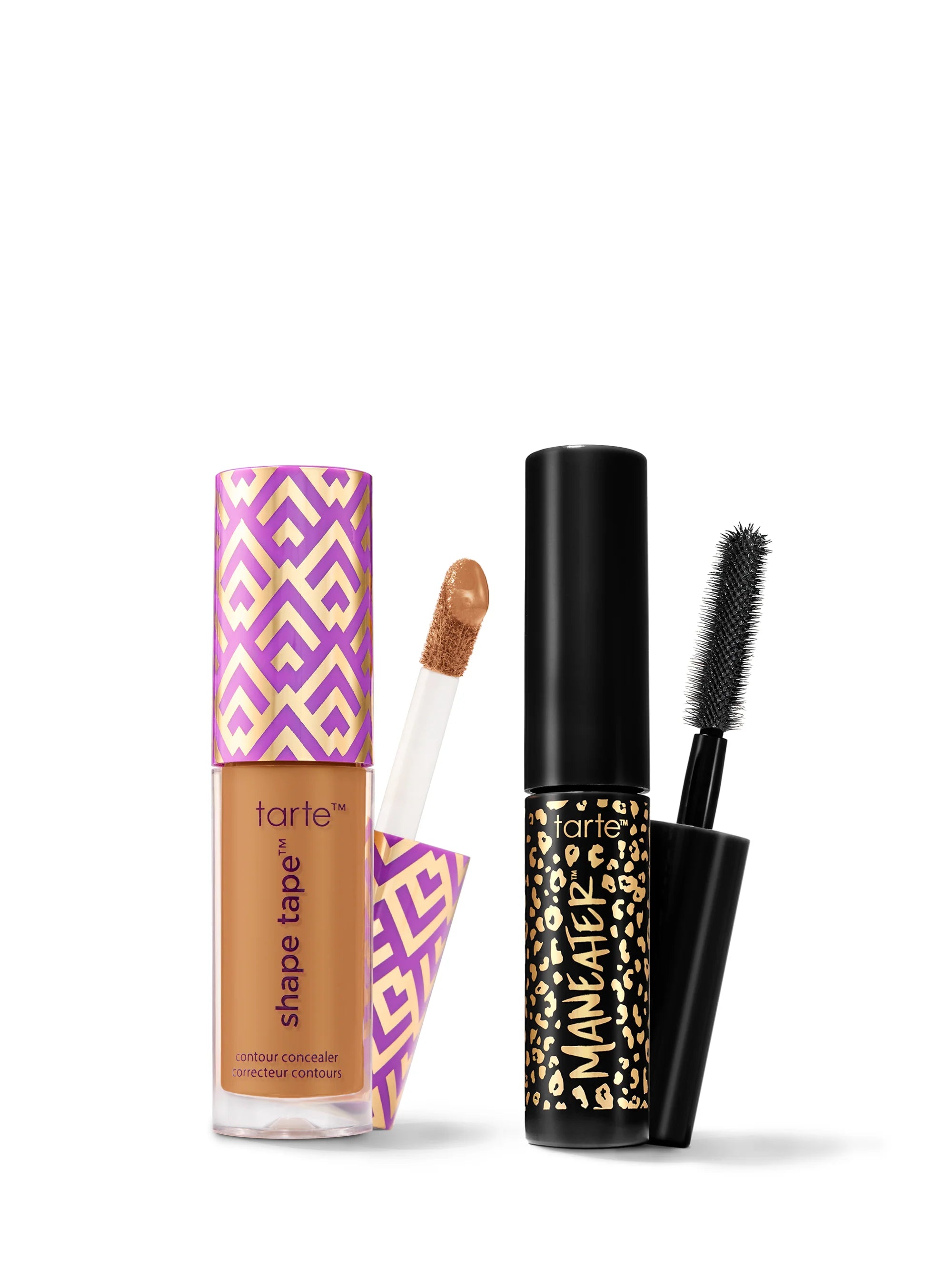 This duo features travel-friendly icons: shape tape™ concealer for 16-hr coverage & maneater™ mascara to flutter every lash.