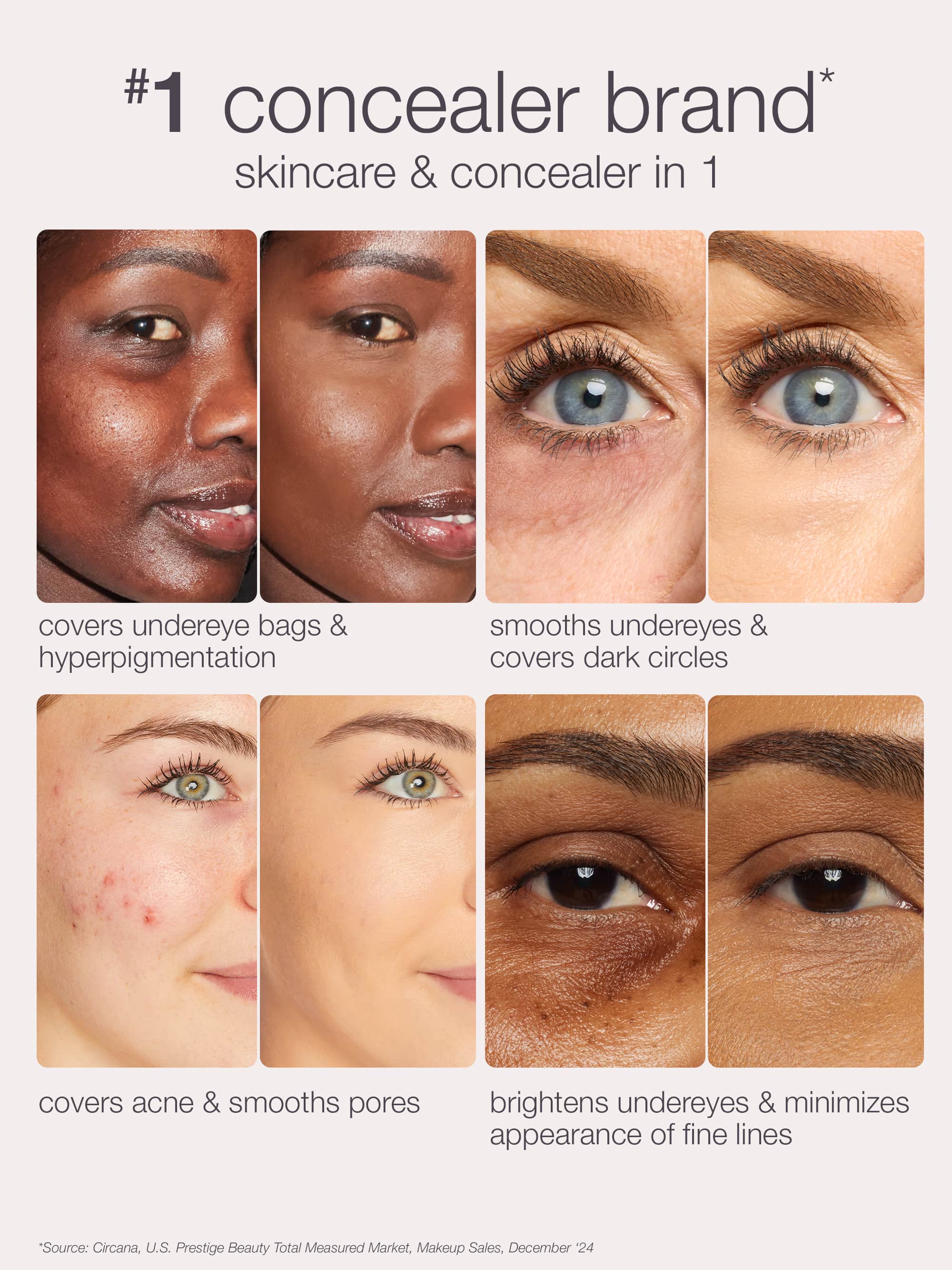 *Source: Circana, LLC, U.S. Prestige Beauty Total Measured Market, Makeup Concealer by Brand, Dollar & Unit Sales, January-December 2024